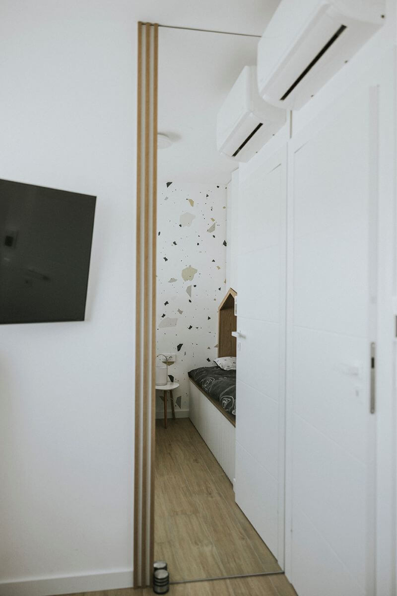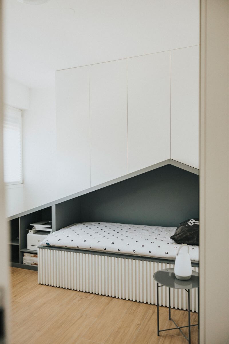 Uvjet je bio i da ostanu 2 kupaonice te da se napravi dovoljno mjesta za pohranu stvari. Obzirom da se radi o školarcima bilo je važno u svakoj sobi osigurati i radni prostor.