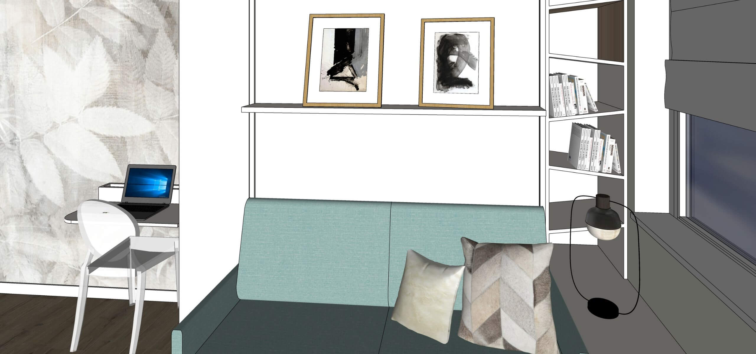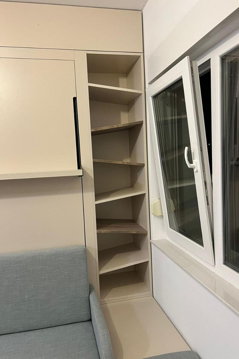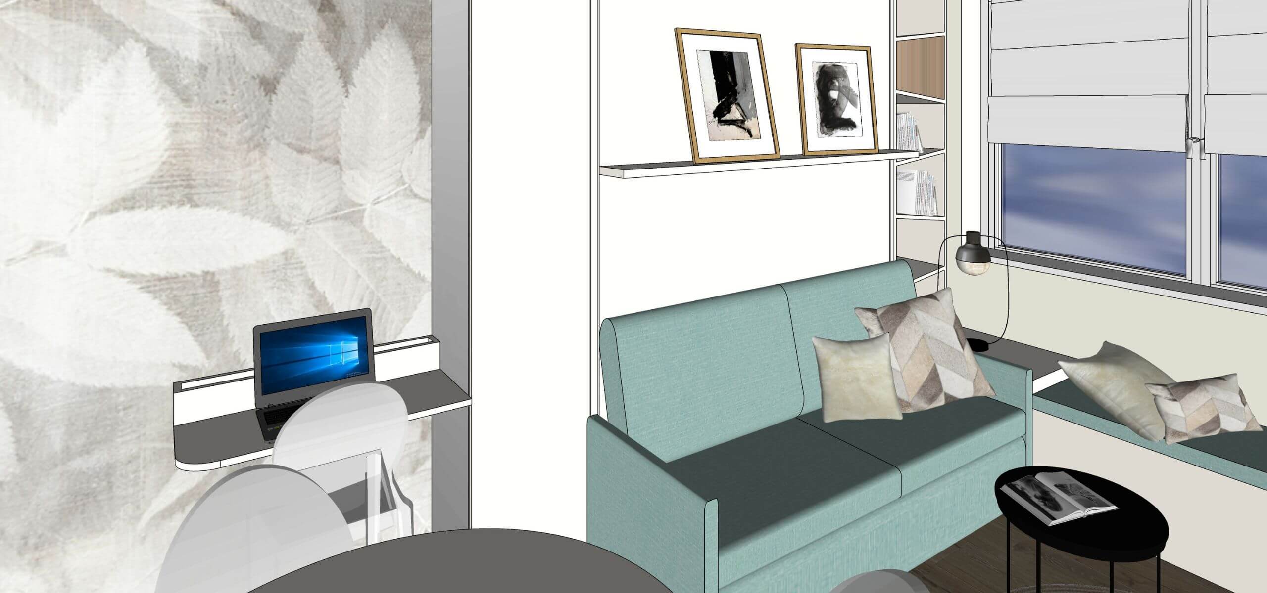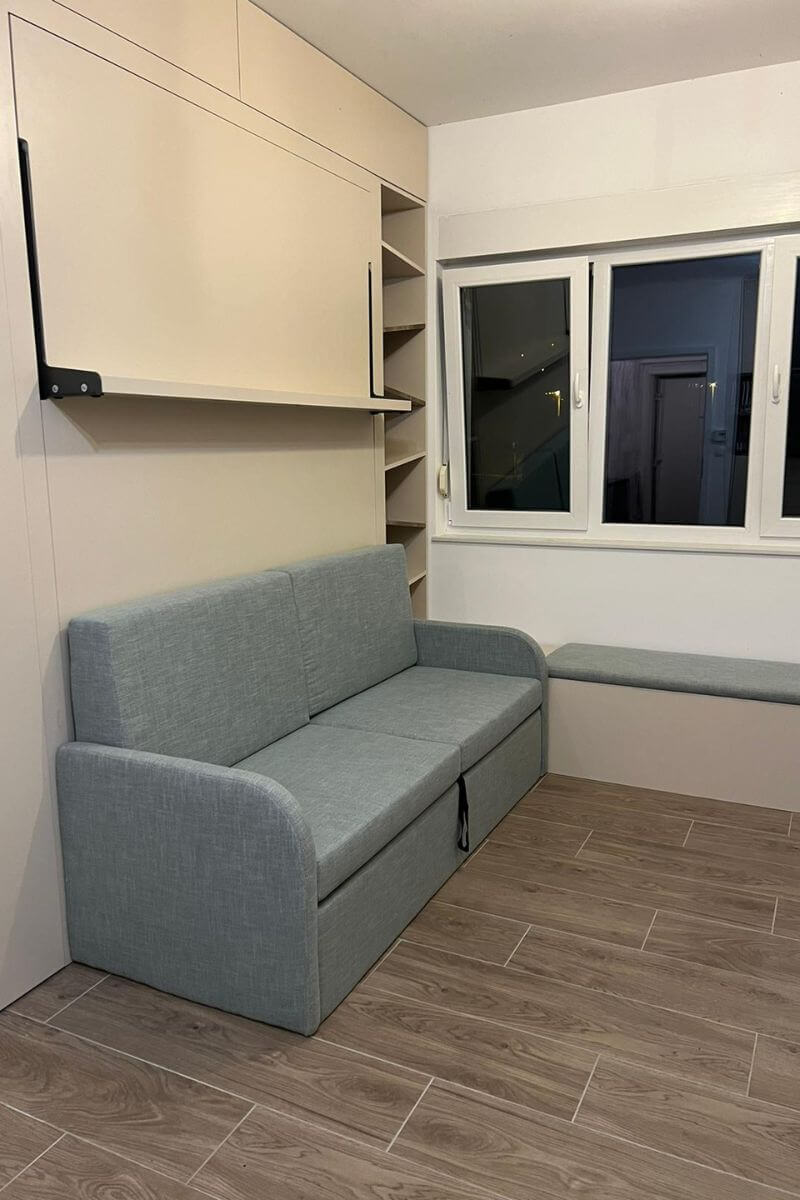 Sobu smo kompenzirali zidnom krevetom koji se spušta preko kauča uz minimalne intervencije te smo se fokusirali na jednostavnost u svakodnevnom korištenju.