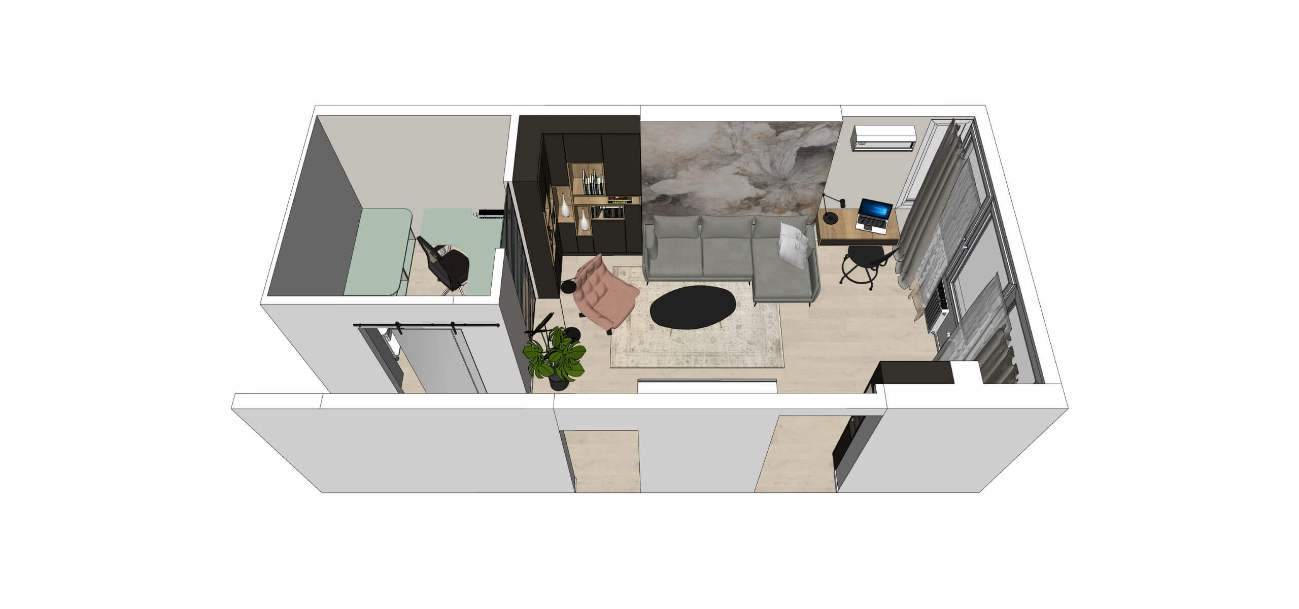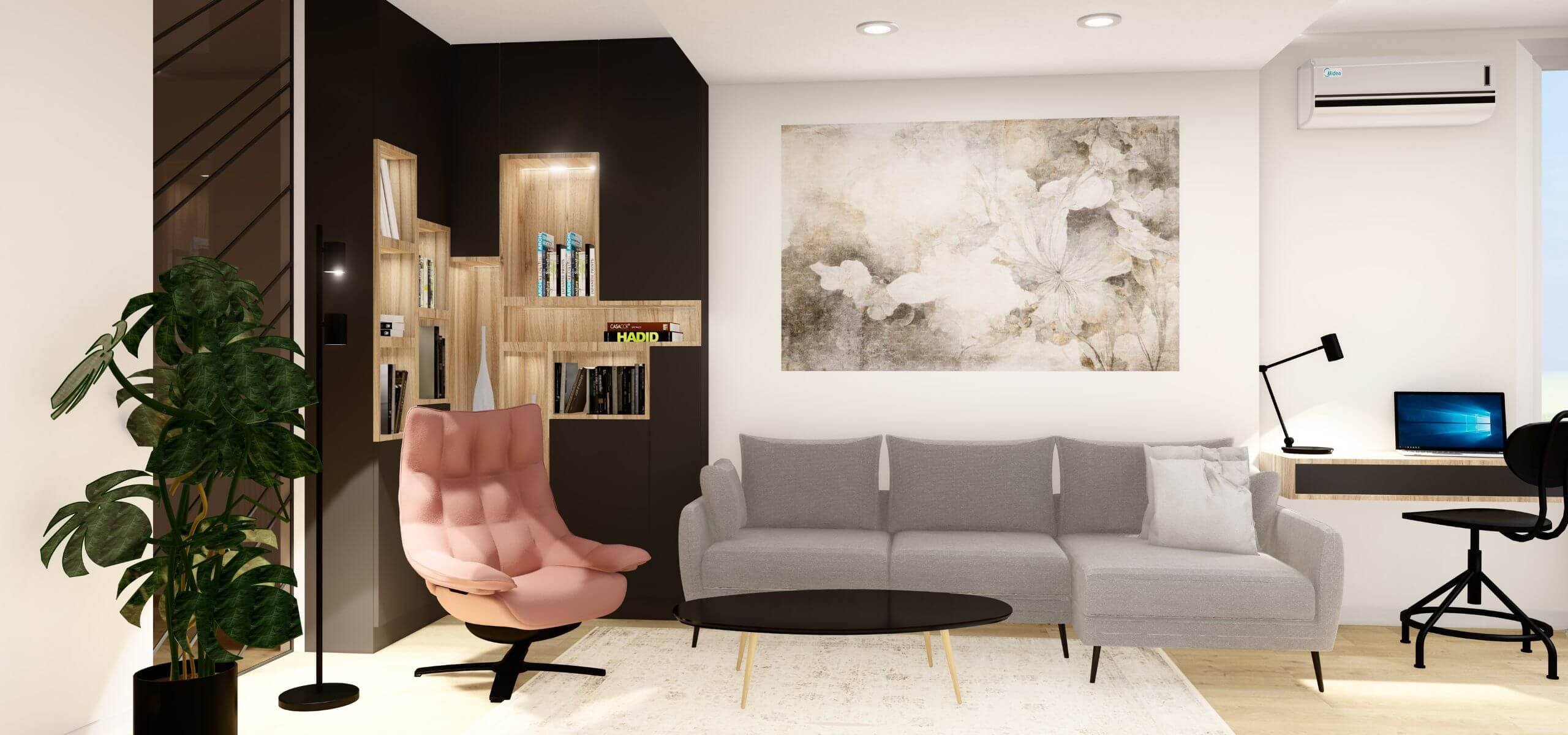 Projektni zadatak: dnevni boravak 27m2, Travno, Zagreb, idejno rješenje 2023. godina